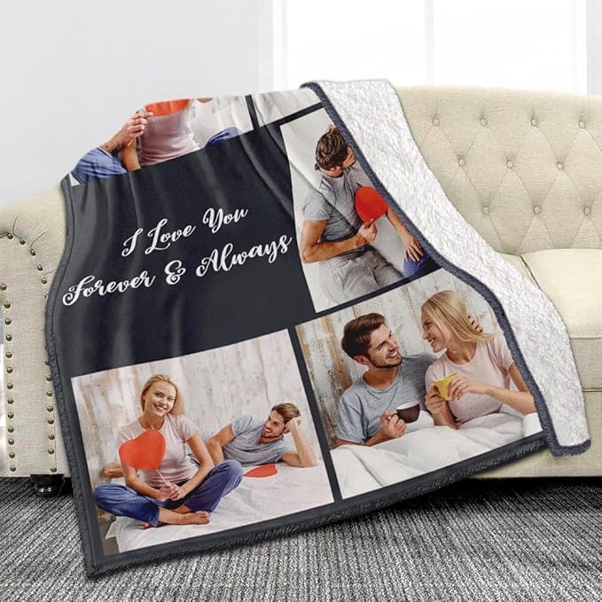 Custom Sherpa Fleece Blanket with Photos, Text, Soft, Warm, Fuzzy - Personalized Couples Gifts for Boyfriend, Girlfriend - Customized Picture Blanket for Birthday, Anniversary, Christmas