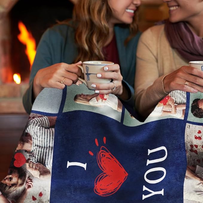 Custom Sherpa Fleece Blanket with Photos Text - Soft, Warm, Fuzzy Personalized Couples Gifts for Boyfriend, Girlfriend - Customized Picture Blanket for Birthday, Anniversary, Christmas