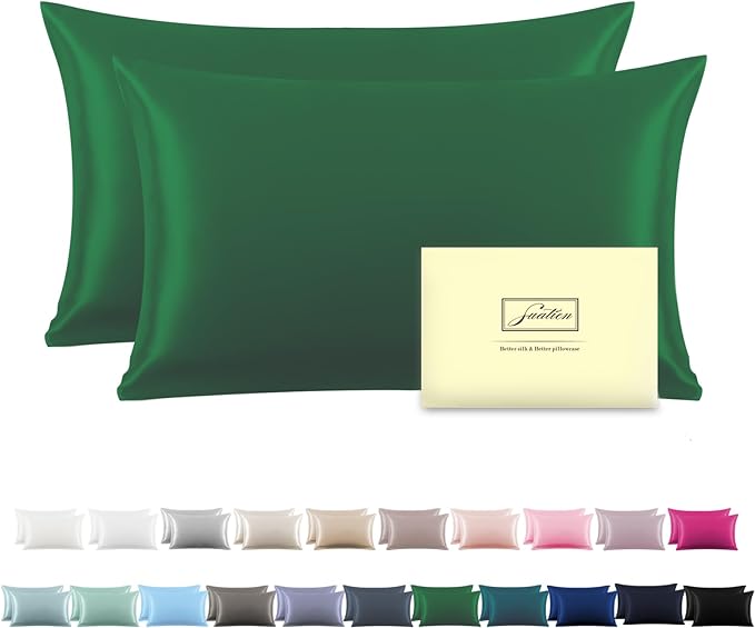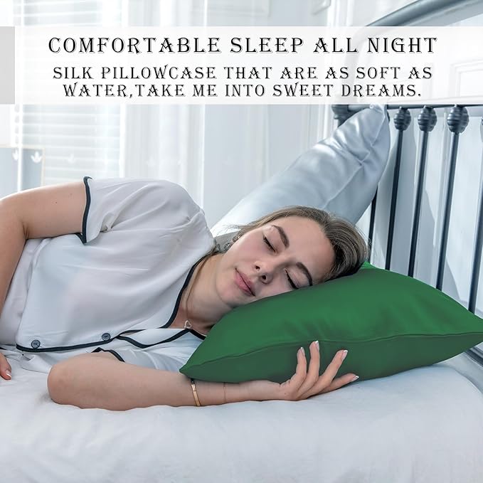 Silk Pillow Cases 2 Pack Soft Breathable and Sliky Queen Size Pillow Cases Set of 2,Natural Mulberry Satin Silk Pillowcase with Hidden Zipper for Hair and Skin (Olive Green,20"X 30",2pcs)