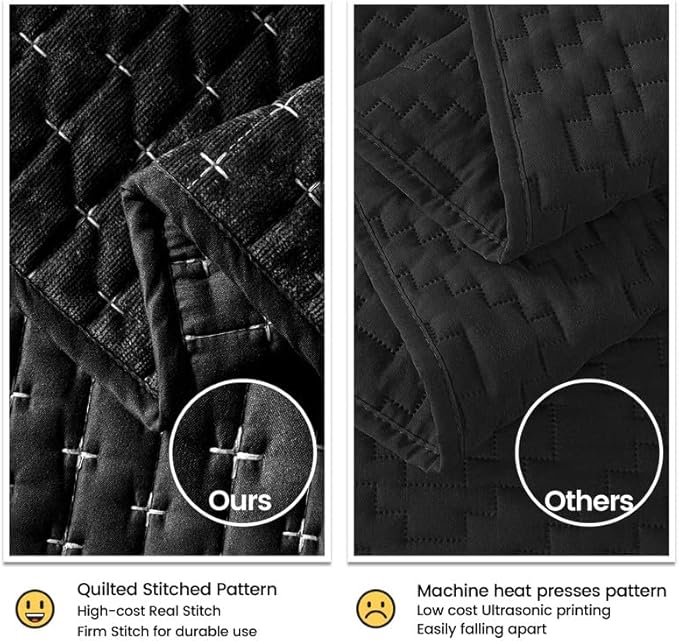 Black Velvet Queen Quilt Bedding Set,Luxurious Quilted Bedding Set,Oversized Bedspread Coverlet with Brushed Back,Ultra Soft Cozy Warm for All Season
