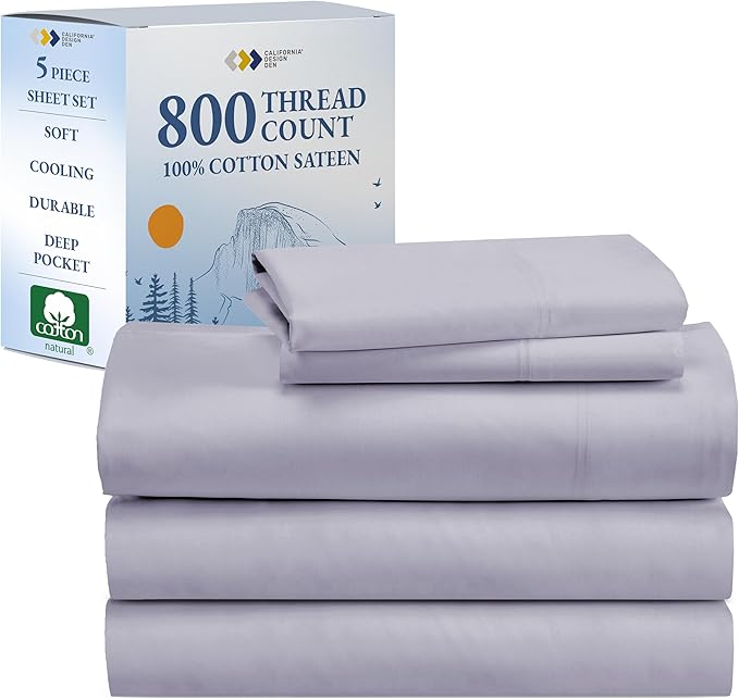California Design Den 100% Cotton Sateen Split King Sheet Set - Luxury 800 Thread Count Bedding Set with Deep Pockets - Cooling & Softer Thick Cotton Sheets Than Egyptian Cotton Sheets (Lavender)