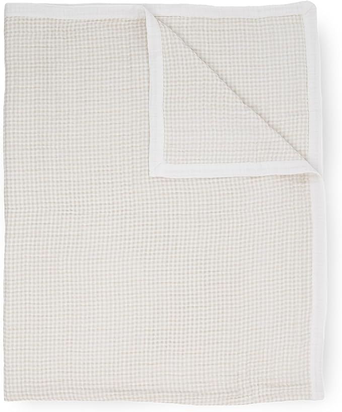 Little Unicorn Premium Quilted Throw | Super Soft, Multi-Layered Muslin XL Blanket| Great for Kids & Families (Tan Gingham)