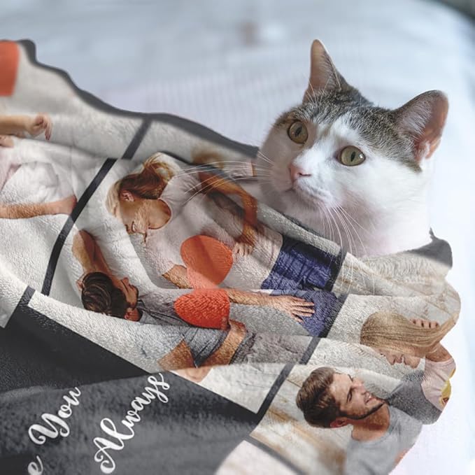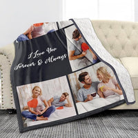 Custom Sherpa Fleece Blanket with Photos & Text - Soft, Warm & Fuzzy Personalized Couples Gifts for Boyfriend & Girlfriend - Customized Picture Blanket for Birthday, Anniversary & Christmas