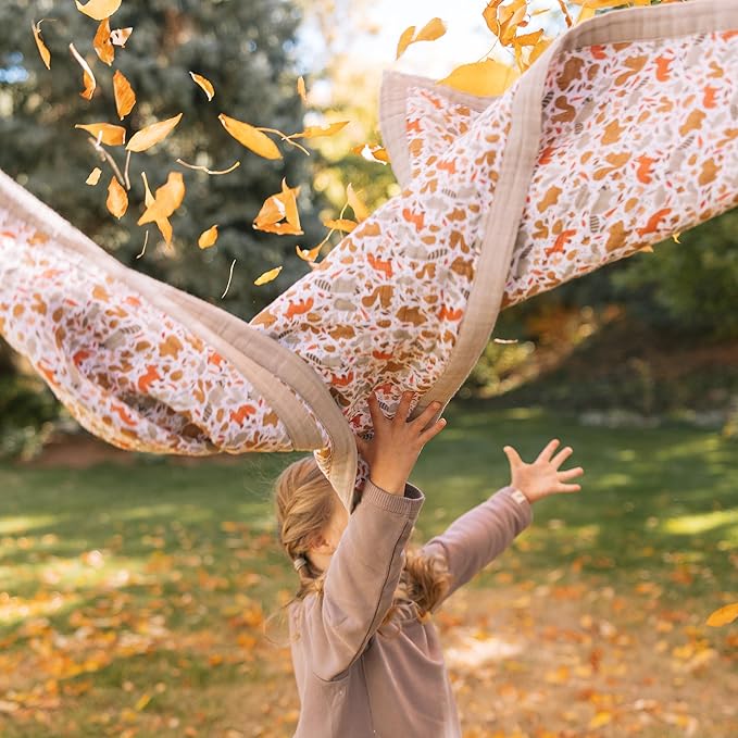 Little Unicorn Newborn Receiving Quilt | Ultra- Soft, Multi-Layered Muslin Fabric | Gift for Newborns & on-The-go (Fall Friends)