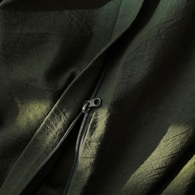 JIYUAN 100% Washed Cotton Duvet Cover Set 3 Pieces Oversized Queen, 1 Duvet Cover 98x98 Inches(Comforter Not Included) and 2 Pillowcases,Linen Feel Bedding Set Comfy and Breathable,Olive Green