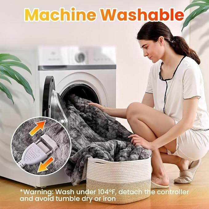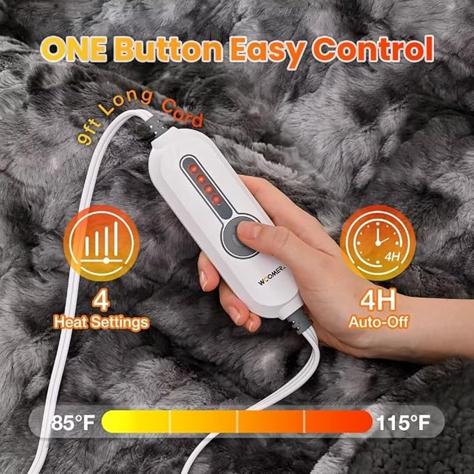 WOOMER Electric Heated Throw Blanket 50"x 60", Reversible Super Cozy Faux Fur&Sherpa, Fast Heating,4 Heating Levels & 4H Auto Off, Machine Washable, Overheat Protection, Gift