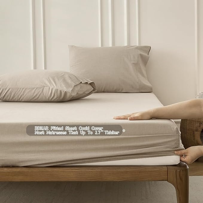 6PS Linen Like Bedding Sheet Sets Linen Grey Queen Size Cotton Bedding Set Oeko-TEX Standard 100% Washed Cotton Deep Pocket Queen Size Fitted Sheet Plus Cozy Flat Sheet and 4 Pillowcases