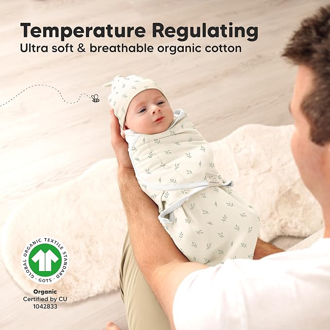 KeaBabies 3-Pack Swaddles for Newborns, Girls, Boys with Hats - Organic Soft Baby Sleep Sacks, Breathable Baby Swaddle 3-6 Months Beanies Set, Premie Infant Sleep Sack 0-3 Months (Fleur)