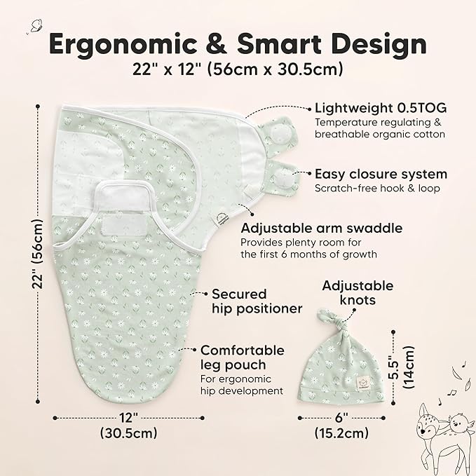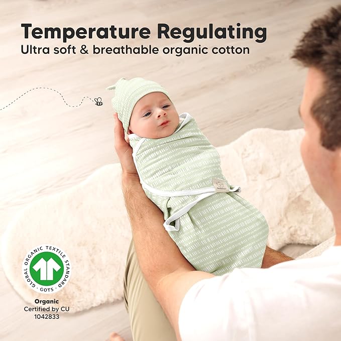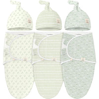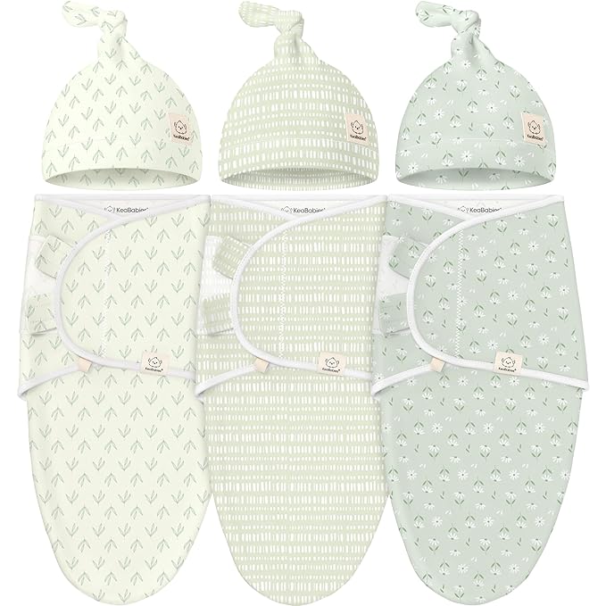KeaBabies 3-Pack Swaddles for Newborns, Girls, Boys with Hats - Organic Soft Baby Sleep Sacks, Breathable Baby Swaddle 3-6 Months Beanies Set, Premie Infant Sleep Sack 0-3 Months (Leafy)