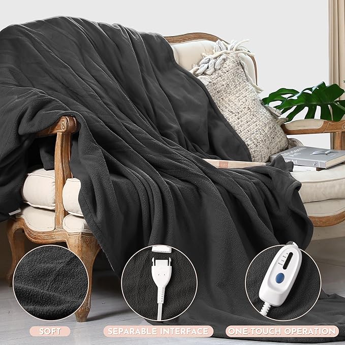 Electric Blanket 72'' x 84'' Full Size Soft Heated Blanket with 4 Levels of Heat & 10 Hour Auto Off, Machine Washable - Steel Gray