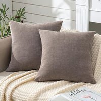 GAWAMAY Decorative Chenille Throw Pillow Covers 24x24 Inch Pack of 2, Soft Square Couch Pillow Cover for Sofa Cushion Living Room Bedroom Pillowcases Taupe Grey 60x60cm (ONLY Covers)