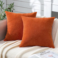 GAWAMAY Decorative Chenille Throw Pillow Covers 26x26 Inch Pack of 2, Soft Square Couch Pillow Cover for Sofa Cushion Living Room Bedroom Solid Dyed Oversized Pillowcases Orange 66x66cm (ONLY Covers)