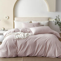 JIYUAN 100% Washed Cotton Duvet Cover Set 3 Pieces Full, 1 Duvet Cover 80x90 Inches (Comforter Not Included) and 2 Pillowcases,Linen Feel Bedding Set Comfy and Breathable, Heathered Greyish Pink