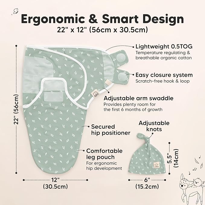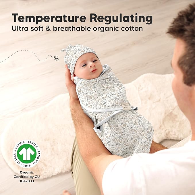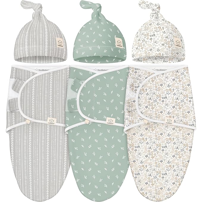KeaBabies 3-Pack Swaddles for Newborns, Girls, Boys with Hats - Organic Soft Baby Sleep Sacks, Breathable Baby Swaddle 3-6 Months Beanies Set, Premie Infant Sleep Sack 0-3 Months (Prairie)