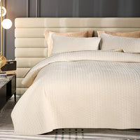 Velvet Quilt Twin Size Set,Luxurious Reversible Quilted Bedspread Bedding Set, Lightweight Coverlet with Brushed Back,Ultra Soft Cozy Warm for All Season,Cross Stitch Striped, Cream,Twin