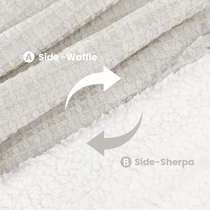 Heated Blanket Electric Throw Waffle, 50x60 Inches Sherpa Fleece Fast Heating Blanket 6 Heating Levels & 4 Hours Auto Off ETL Certification,Beige Throw