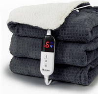 Heated Blanket Electric Throw Waffle, 50x60 Inches Sherpa Fleece Fast Heating Blanket 6 Heating Levels & 4 Hours Auto Off ETL Certification,Charcoal Grey Throw