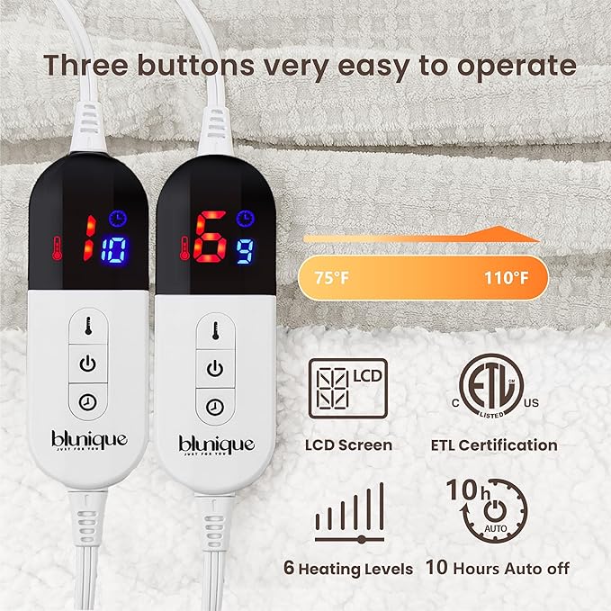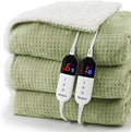 Electric Blanket King Waffle, 90x100 Inches, Dual Controllers, Sherpa Fleece, 6 Heating Levels, 10 Hours Auto Off, ETL Certified, Beige King