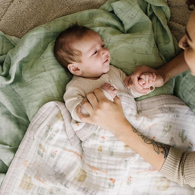 Little Unicorn Newborn Receiving Quilt | Ultra- Soft, Multi-Layered Muslin Fabric | Gift for Newborns & on-The-go (Desert Night)