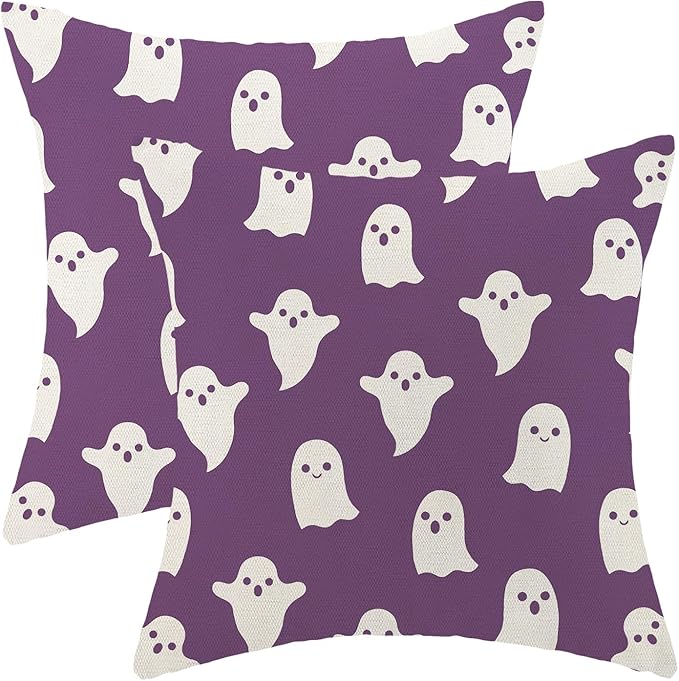 Halloween Decor Pillow Covers 18x18 Set of 2 Purple Cute Ghost Throw Pillow Covers Halloween Decoration Pillow Covers for Halloween Home Decorative Linen Cushion Case for Home Couch Sofa