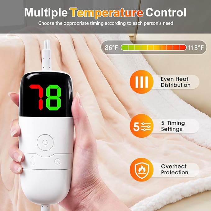 greenoak Wearable Heated Throw Blanket Electric Shawl - Heated Robe Poncho Blanket Hoodie for Adult, Winter Gifts for Mom Women Girlfriend Grandma, Warm Sherpa with Pockets, 5-Position Timer,Pink