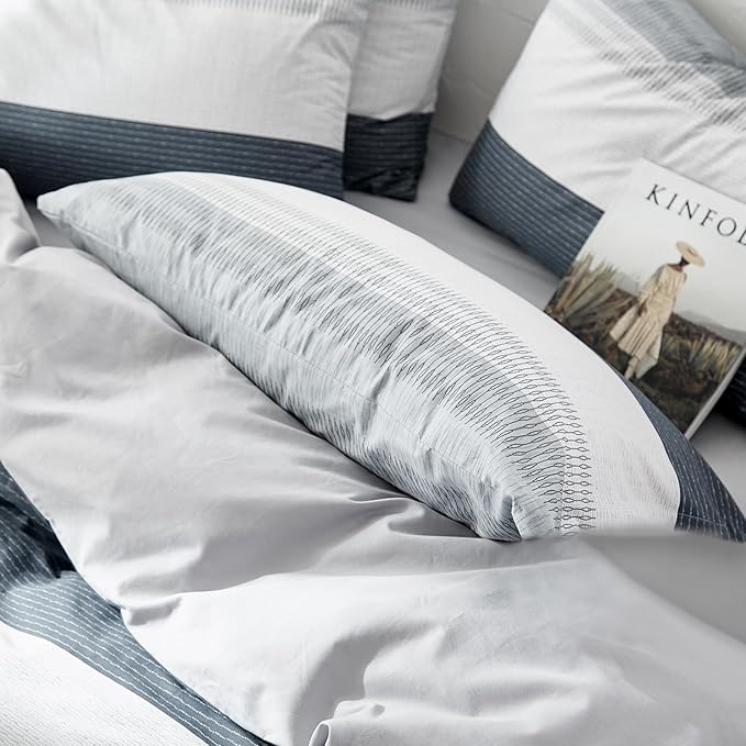 VM VOUGEMARKET Stripes Duvet Cover Set Twin,Blue Green Striped Duvet Cover with 2 Pillowcases for Teens,100% Cotton Modern Cozy Comforter Cover with Zipper Closure & Corner Ties 68"x90"(3pcs,Twin XL)