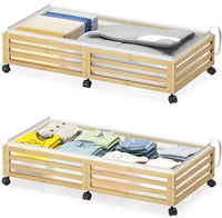 Under Bed Storage with Wheels-Large Bamboo Underbed storage Containers with Large Dust Bag Stackable Under the Bed Shoe Storage Bins for Clothes Books Bedding (2 Packs Nature, 33.07"L×16.54"W× 6.5"H)