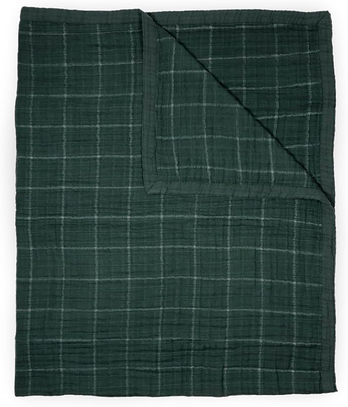 Little Unicorn Premium Quilted Throw | Super Soft, Multi-Layered Muslin XL Blanket| Great for Kids & Families (Evergreen Plaid)