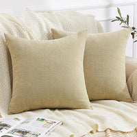 GAWAMAY Decorative Chenille Throw Pillow Covers 24x24 Inch Pack of 2, Soft Square Couch Pillow Cover for Sofa Cushion Living Room Bedroom Solid Dyed Pillowcases Khaki 60x60cm (ONLY Covers)