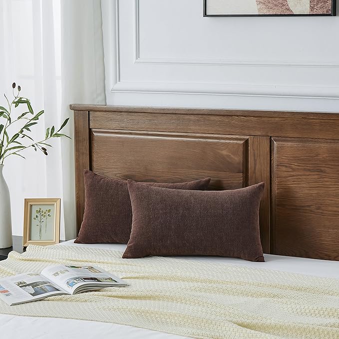 GAWAMAY Lumbar Decorative Throw Pillow Covers 12"x20" Inch Set of 2, Super Soft Chenille Rectangle Pillowcase for Living Room Bedroom Sofa Couch Cushion Support Pillow Cover 30x50cm Coffee (No Insert)
