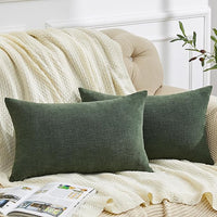 GAWAMAY Decorative Rectangle Throw Pillow Covers Lumbar Support Pillow 12"x20" Inch Set of 2, Soft Chenille Pillowcase for Living Room Bedroom Sofa Couch Cushion Cover Dark Green 30x50cm (No Insert)