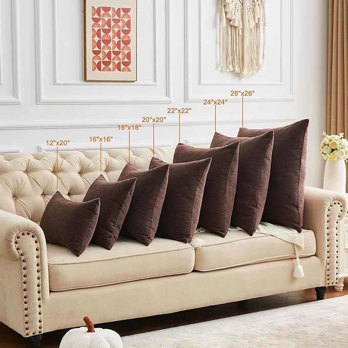 GAWAMAY Decorative Chenille Throw Pillow Covers 26x26 Inch Pack of 2, Soft Square Couch Pillow Cover for Sofa Cushion Living Room Bedroom Solid Dyed Oversized Pillowcases Coffee 66x66cm (ONLY Covers)