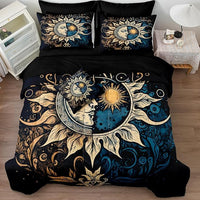 Sun and Moon Comforter Set Black Boho Bedding Set Celestial Galaxy Starry Space Bedding Comforter Mandala Exotic Black Bed in A Bag King Size