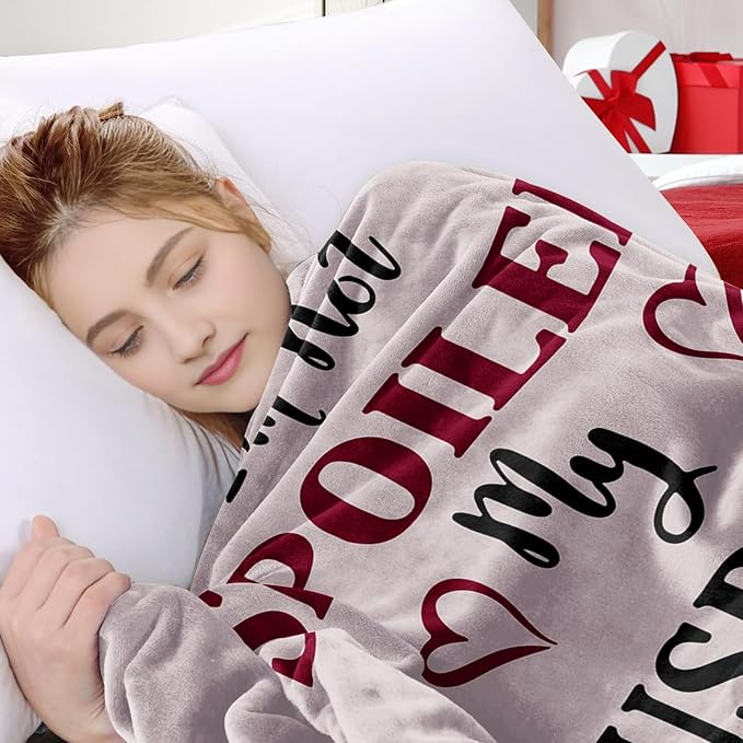 CENSIHER Gifts for Wife, Spoiled Wife Blanket 60x50in, Valentines Gifts for Her Wife, Anniversary Birthday Gifts for Women Her, Wife Birthday Gift Ideas, Presents for Mothers Day Christmas