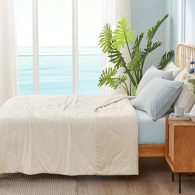 Snuggle Sac Cooling Comforter Queen Size, Breathable Cooling Blankets for Hot Sleepers and Night Sweats, Soft Lightweight Queen Size Cold Blankets, 90x90 Inches, Snow Ivory
