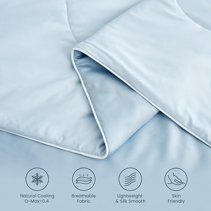 Snuggle Sac Cooling Comforter Twin Size, Breathable Cooling Blankets for Hot Sleepers and Night Sweats, Summer Comforters for Twin Size Bed, Soft Lightweight Blankets, 68x90 Inches, Ice Blue