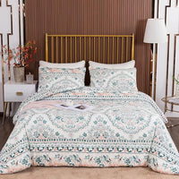 CLOTHKNOW Green White Queen Comforter Set Floral Botanical Bedding Comforter Sets Boho Comforter Pumpkin Comforter Queen