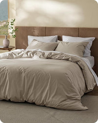 Bedsure Cotton Duvet Cover Queen - Luxury Slub Weave 100% Cotton Duvet Cover Set with a Linen Like Textured, Easy Change Durable Bedding Set 3 Pieces, Tannish Linen Grey, 90" x 90"