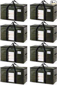 TAILI 8 Pack Green Extra Large Storage Bags, Heavy Duty Totes with Visible Window, Wrap Around Handles, Perfect for Moving Sale