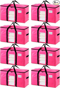 TAILI 8 Pack Pink Extra Large Moving Bags, Heavy Duty Totes with Visible Window, Wrap Around Handles, Space-Saving Storage, Alternative to Moving Boxes Sale