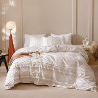 Luxlovery Boho Farmhouse Comforter Set Cal King Teens Kids White Jacquard Bedding Set Bohemian Country Blanket Quilts Durable Soft Breathable 3PCS Comforter Set California King Bed