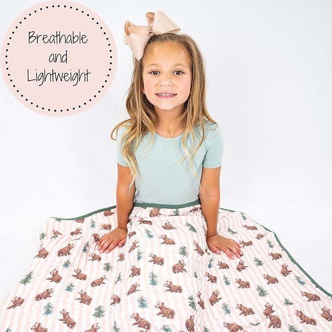 LollyBanks Muslin Baby Blanket 100% Organic Cotton, Muslin Quilt Lightweight, 6 Layers Soft Blanket Neutral, 47"x 47" Toddler Blankets for Girls and Boys, Nursery Receiving Blankets (Bear Print)