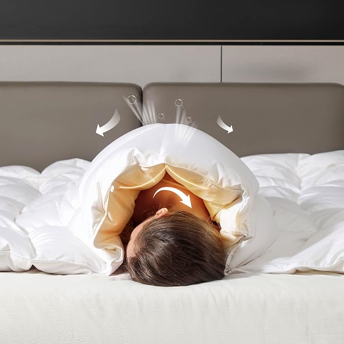 Feather Down Cotton Comforter Oversize King Size, All Season 100% Cotton Duvet Insert, Hotel Luxury Bedding Comforter Cozy Ultra Soft Medium Warmth Duvet Insert with 8 Corner Tabs White 120 x 98Inch