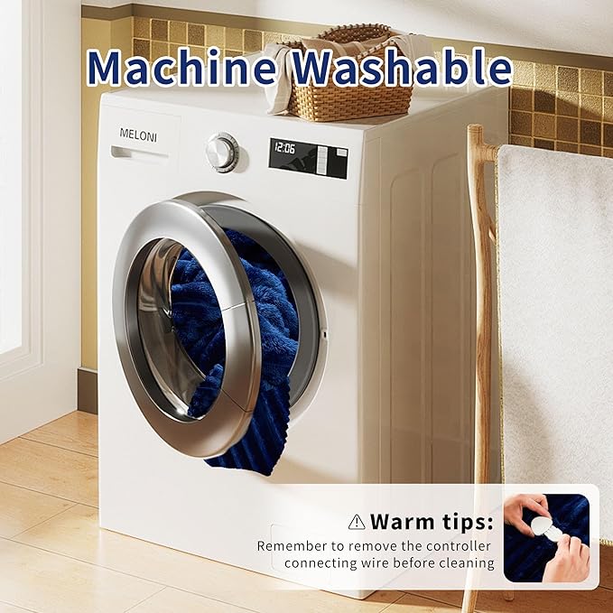 Heated Blanket Electric Blanket 50"x60", Soft Flannel Sherpa Electric Throw with 5 Heating Level & 1-12 Hour Auto Off, Heated Throw with Overheating Protection, Machine Washable (Navy Blue)