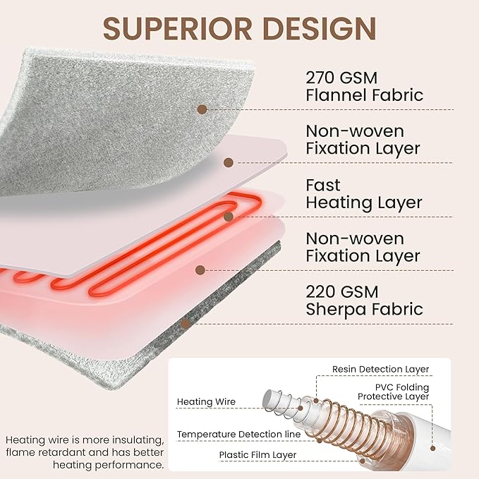 Heated Blanket Electric Blanket 50"x60", Soft Flannel Sherpa Electric Throw with 5 Heating Level & 1-12 Hour Auto Off, Heated Throw with Overheating Protection, Machine Washable (Grey)