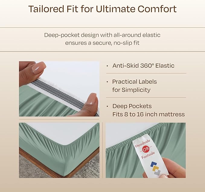 California Design Den King Size Sheet Set - Luxury Hotel 800 Thread Count Sateen, Natural 100% Cotton Bedsheets King Size Bed, Deep Pockets with Anti-Skid Elastic, Cool and Durable - Sage Green