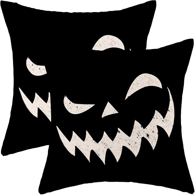 Halloween Pillow Covers 18x18 inches Set of 2 Spooky Black Decorative Throw Pillow Covers Outdoor Autumn Halloween Decoration Pillowcase Farmhouse Decorative Linen Cushion Case for Sofa Couch