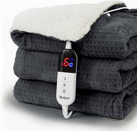 Heated Blanket Electric Blanket Full Waffle,72x84 Inches Sherpa Fleece Fast Heating Blanket 6 Heating Levels & 10 Hours Auto Off ETL Certification,Charcoal Full