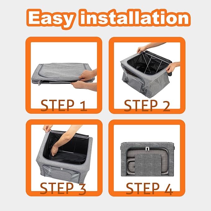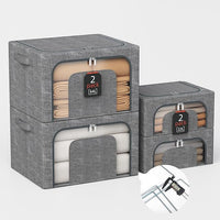 Stackable Clothes Storage Bins with Metal Frame, 4 Piece Stackable Clothes Organizer with Double Opening + Clear Window Design for Cabinets, Under Beds, Storage and Garage Gray 2 * 22 L + 2 * 64 L