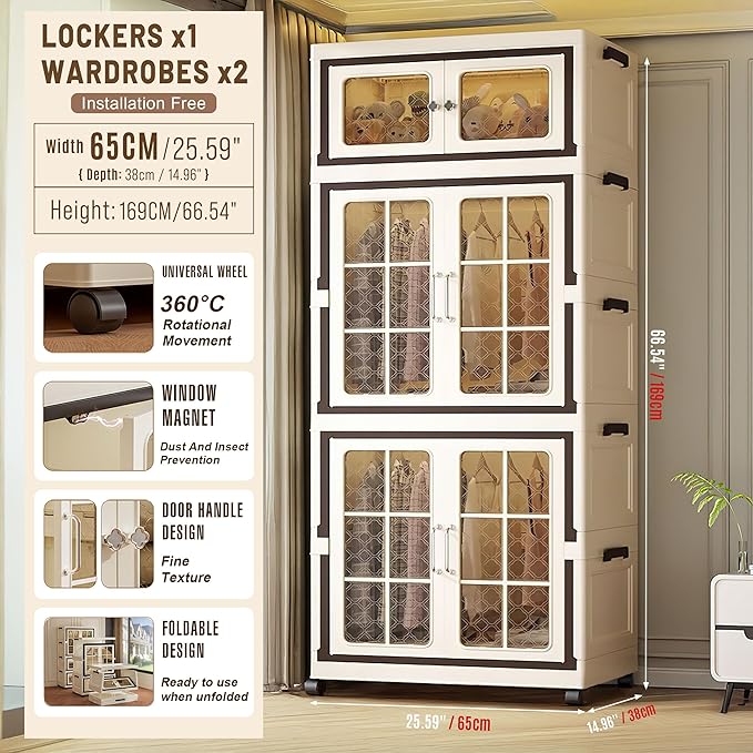 SunSettler Plastic Storage Bins with Lid, Stackable Containers with Wheels, Folding Storage Cabinets, Stackable Closet Organizers for Home and Office Dorm Organizer Essential (1+2 Transparent)